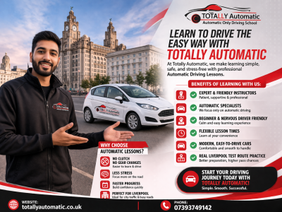 Totally Automatic offers professional Automatic Driving Lessons Liverpool designed to make learning simple, smooth, and stress-free. With automatic cars, there’s no need to worry about clutch control or gear changes, allowing learners to focus fully on road awareness and safe driving habits. Our experienced and patient instructors provide step-by-step guidance, helping beginners and nervous drivers build confidence at their own pace.